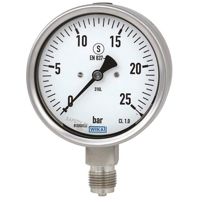 La conception consiste en deux caractéristiques spéciales : une cloison de sécurité placée derrière le cadran et une paroi arrière éjectable qui est libérée du boîtier en cas de pression interne excessive ou de rupture du tube manométrique.
